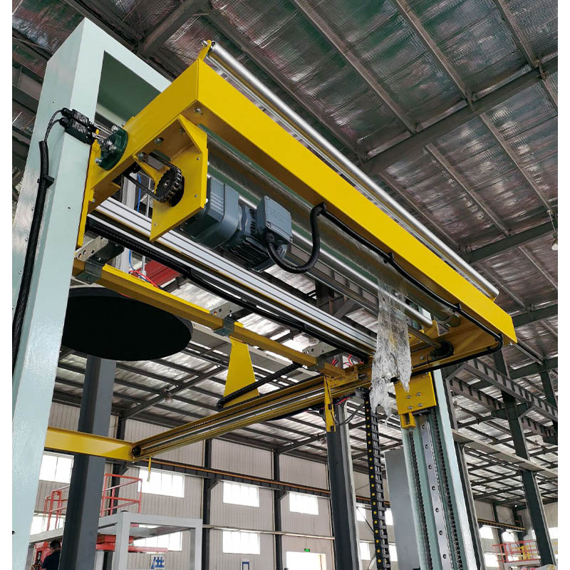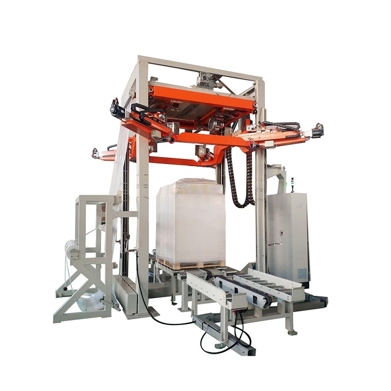 Stretch hood wrapper is a high efficiency solution to handle integrated pallet packaging. By stretching on four sides of film roll, the wrapper covers film around pallet from top to bottom.